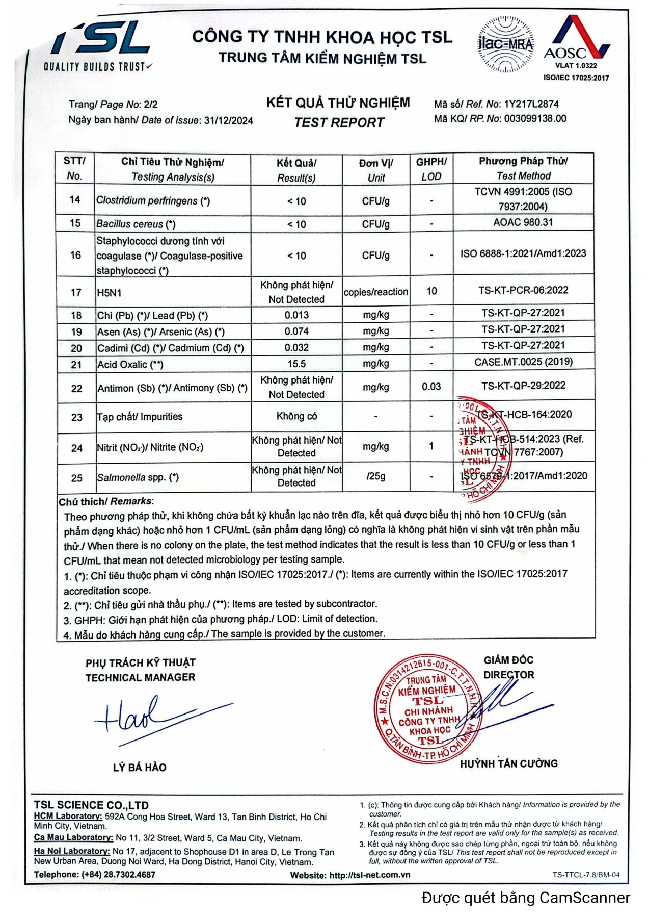 Chứng nhận mẫu nước dùng sơ chế & vệ sinh thiết bị dụng cụ